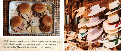 Along with a great shopping experience, we serve mouth-watering sandwich plate lunches Monday-Saturday. Top off your pulled pork sandwich with our fresh homemade fudge or Blue Bell ice cream.